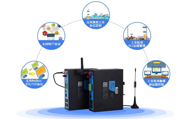 支持Modbus RTU/TCP協(xié)議;支持MQTT協(xié)議;支持其他工業(yè)協(xié)議定制;工業(yè)現(xiàn)場(chǎng)PLC遠(yuǎn)程管理;工業(yè)現(xiàn)場(chǎng)觸摸屏遠(yuǎn)程控制。