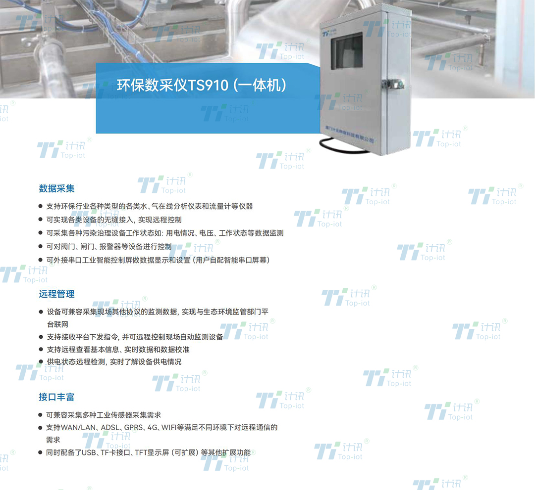 計訊物聯(lián)網(wǎng)關型環(huán)保數(shù)采儀TS910可實現(xiàn)工業(yè)路由功能,實現(xiàn)2路局域網(wǎng)接入和視頻數(shù)據(jù)的采集和上傳,支持高級路由器功能,可實現(xiàn)常用VPN和內(nèi)網(wǎng)穿透功能。
