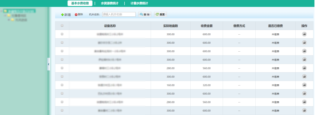 計訊物聯(lián)智慧水務(wù)系統(tǒng)可實現(xiàn)預(yù)付費和預(yù)授權(quán)等方式的水費繳收,可按業(yè)務(wù)規(guī)則設(shè)置收費規(guī)則,如根據(jù)機井控制器對應(yīng)的土地畝數(shù)和水價計算出收費金額,不同輪次不同價格。繳費方式可為現(xiàn)金、銀行卡、支付寶、微信等。