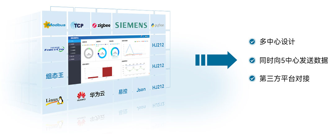 支持MODBUS RTU、MODBUS TCP、MQTT、Ntirp、、Json、HJ212等協(xié)議,