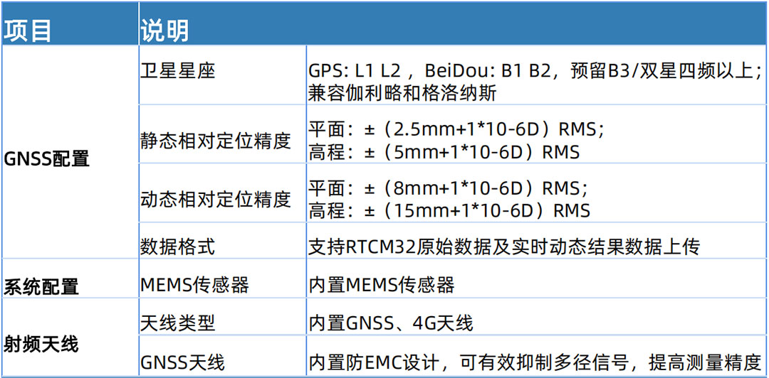 動態(tài)相對定位精度:平面±(8mm+1*10-6D)RMS;高程±(15mm+1*10-6D)RMS,精準定位監(jiān)測。