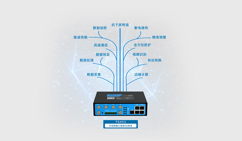 5G/5G RedCap物聯(lián)網(wǎng)網(wǎng)關(guān) |TG453計訊物聯(lián)小體積5G工業(yè)網(wǎng)關(guān),5G高速率網(wǎng)絡(luò),數(shù)據(jù)采集、邊緣計算、數(shù)據(jù)處理、協(xié)議轉(zhuǎn)換、視頻識別、高速通信極速傳輸、全方位防護(hù)、精準(zhǔn)預(yù)警、數(shù)據(jù)加密、斷點續(xù)傳、抗干擾。 -
