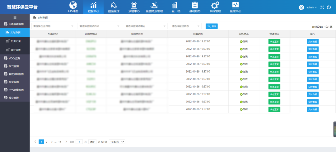 可在地圖上顯示各個污染源地理位置以及直觀查看所有污染源的實時監(jiān)控狀態(tài),并實時顯示污染源企業(yè)在線、離線、超標狀態(tài);同時支持查看污染源企業(yè)的實時數(shù)據(jù),歷史數(shù)據(jù)、超標數(shù)據(jù)等相關(guān)信息。